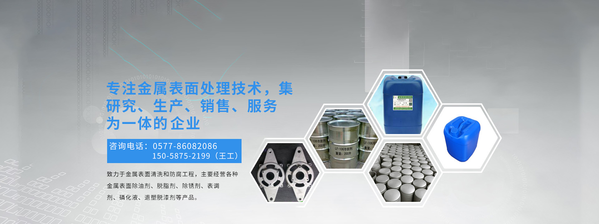 溫州龍飛環(huán)保科技有限公司是金屬表面處理技術(shù)集研究、生產(chǎn)、銷(xiāo)售、服務(wù)為一體的高新科技企業(yè),致力于金屬表面清洗和防腐工程,主要經(jīng)營(yíng)各種金屬表面除油劑、脫脂劑、除銹劑、表調(diào)劑、磷化液、退塑脫漆劑、除蠟水、防銹水防銹油、封閉劑、鈍化劑、發(fā)黑劑、著色劑、化學(xué)拋光劑、合成乳化劑、水處理劑等金屬表面處理劑,廣泛適用于產(chǎn)品的噴塑、噴漆、噴砂、電泳、電鍍前的表面處理以及表面終處理,現(xiàn)已涉通用機(jī)械零部件、汽摩配件、五金及電工工具、電器電腦、潔具閥門(mén)、教學(xué)儀器等。